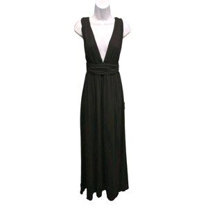 Lulus Heavenly Hues Maxi Dress Small Black Chiffon Side Slit Formal Wedding Prom