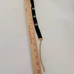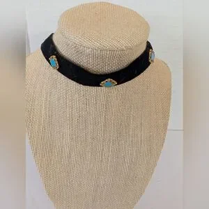 Vintage Necklace Black Gold Choker Style with Turquoise Accents From 1970s