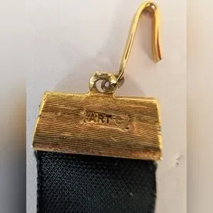 Vintage Choker signed by Art has the most amazing velvet. This stunning choker necklace features a sophisticated black band adorned with elegant gold detailing and vibrant turquoise accents. Perfect for adding a touch of vintage granny or Bohemian to any outfit.