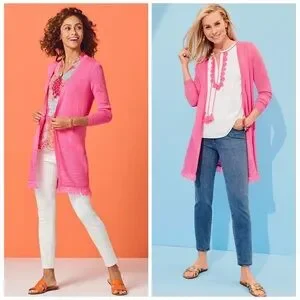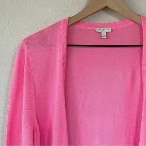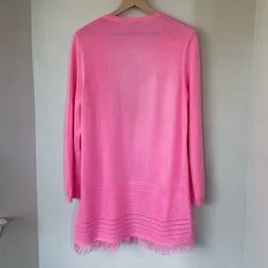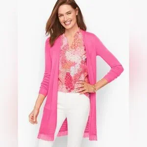 TALBOTS XL Textured Fringe Cardigan in Hot Pink • Open Front Spring Lightweight