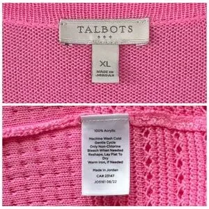 Gorgeous sweater from Talbots outlet, size XL in the color Hot Pink. Tiny pull on interior, not visible when worn. Excellent condition!