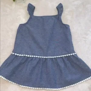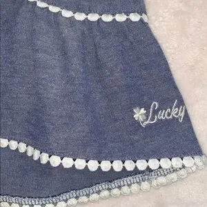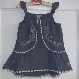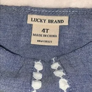 Lucky Brand Chambray Swing Top 4T Ruffle Straps EUC Embroidered Floral Design
