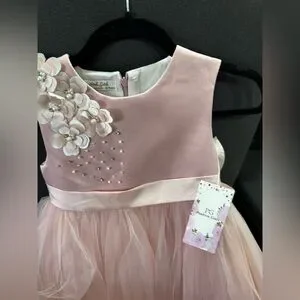 This elegant pink kids dress features a beautiful floral design, perfect for special occasions. Crafted with care, it offers both style and comfort for your little one.