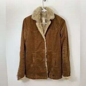 Timeless vintage Abercrombie & Fitch brown corduroy sherpa jacket classic cozy fall winter looks. Crafted from soft cotton fully lined with plush faux shearling warmth, comfort, vintage charm barn, chore, trucker, farm Travel Versatile minimalist washable allseason packable