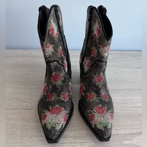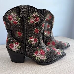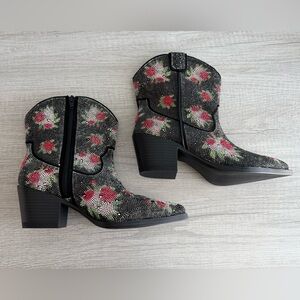 Wild Pair Women’s Black Lacey Floral Bling Booties Size 6