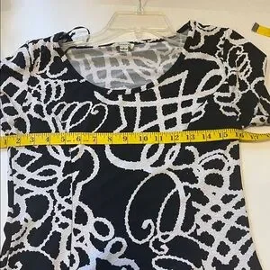 Chic maxi dress with abstract black and white design. Perfect for versatile styling.