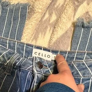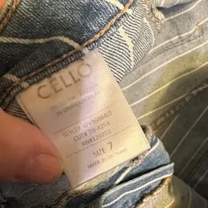 678. Cello juniors size 7 striped flare jeans with frayed hem