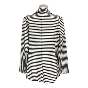Banana Republic Preppy Large Knit Blazer Jacket Striped Stretch Pockets Navy