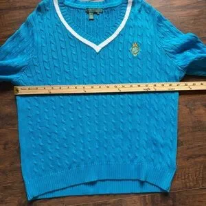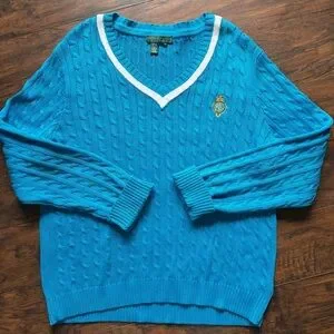 Ralph Lauren Active Cotton V-neck Preppy Cable Knit Sweater
