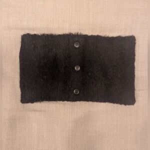 This chic black tube top features a fuzzy texture and stylish button details, perfect for adding a touch of elegance to any outfit.