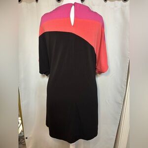 S.L. Fashions Colorblock Dress Size 18 Pink Coral Black Batwing Cocktail Dress