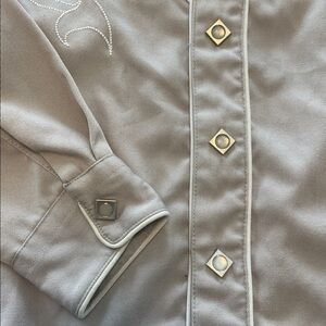 Kids Roper Western Shirt size 4/5, grey with white embroidery. Snap buttons. Size 4/5. Excellent condition.