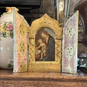 Gold and Pink Madonna and Child Florentine Triptych Icon