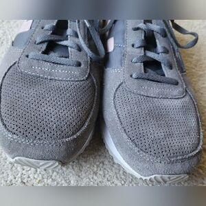 New Balance 220 Women's Gray & Pink Suede Trainers Sneakers tennis shoes Size 11 Pre-owned with some wear. See pics.