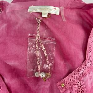 The Edie dress in cotton crochet lace features design details including an empire waist with soft pleating down to a midi length hem. Mother of pearls buttons kiss in front from its high neckline down, while lace details adorn the sleeves and bodice. Comes with a half slip. Due to the nature of the hand dye process, colors may vary from what is pictured. Cotton. Hand wash. Color name is bordeaux, a dark pink. New without tags, has a pinhole at the back neck.