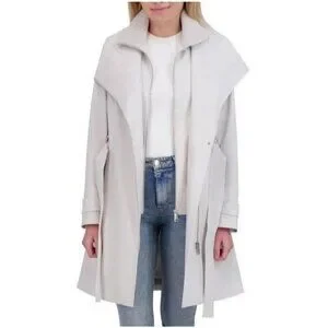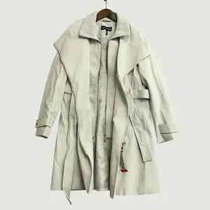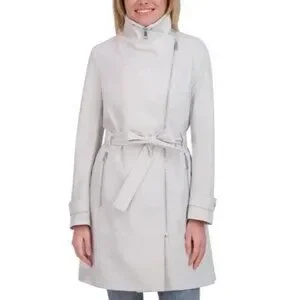 NEW Halston Women's M Gray Double-Breasted Belted Trench Coat Jck16