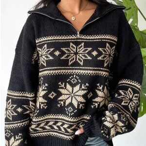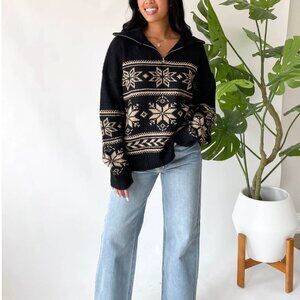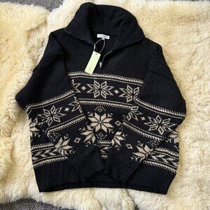 NWT Grey Bandit Black & Cream Warm Me Up Quarter Zip Sweater, Size Medium