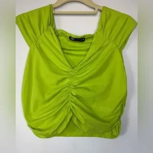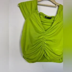 Make a statement with this vibrant lime green ruched crop top from Zara. Bold, flattering, and perfect for adding a punch of color to any outfit. Whether you're dressing up for a night out or styling it casually, this top brings energy and edge to your look.