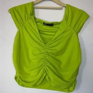 Zara Lime Ruched Crop Top – Size L
