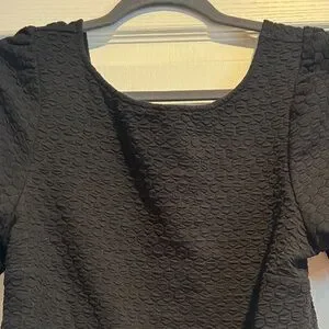 Discover elegance with this black textured blouse, perfect for any occasion. Its sophisticated design makes it a versatile addition to your wardrobe.