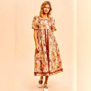 IN LOOM Floral Puff Sleeve Midi Dress | NWT | Cottagecore |Square Neck | S - L