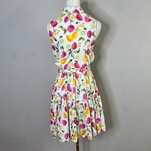 Cynthia Rowley Fruit Print Linen Blend Sleeveless Shirt Dress Belted Size 6