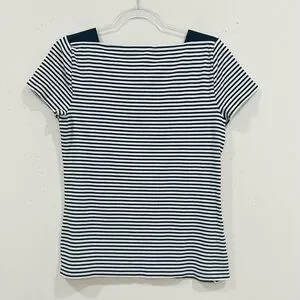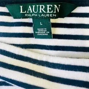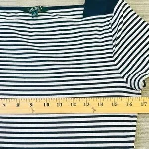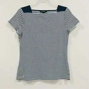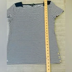 Lauren Ralph Lauren Womens Blue White Short Sleeve Striped T Shirt Size L