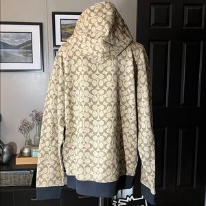 Stylish tan hoodie with a unique pattern. Features a drawstring hood and ribbed cuffs.