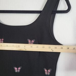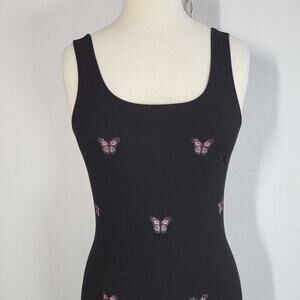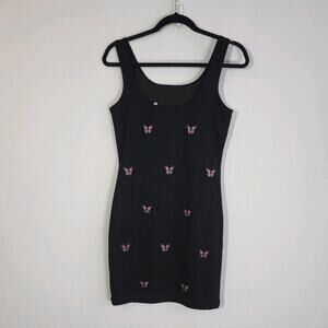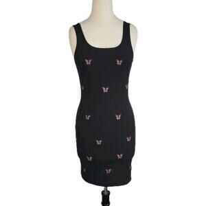 Butterfly Print Sheath Mini Dress M Black Pink Sleeveless Tank 90s Y2K Mean Girl