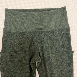 Kirkland Signature Dark Green Brushed Leggings Side Pockets Size Small