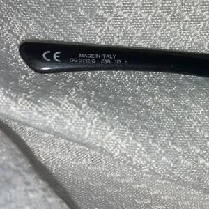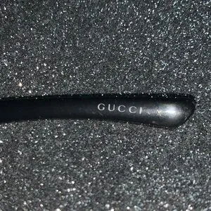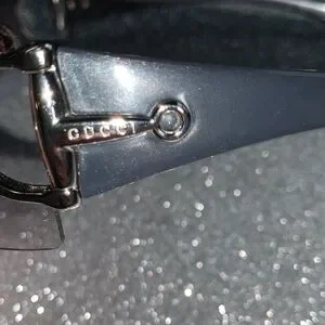 Stylish Gucci sunglasses with a glossy black finish. Features elegant silver accents.