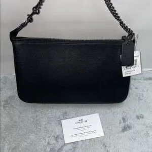 NWT beige, teal, black & cream leaf print calf hair & black refined pebbled leather Coach ‘Nolita’ 24 shoulder bag. No exterior/interior flaws or odors. Comes with care card. Gunmetal hardware is in new condition. The chain shoulder strap is not adjustable or removable. Front zip pocket in new condition. The main interior has 1 slip pocket. This shoulder bag was made September 2016. Style #58412E. 9.5”L x 5.5”H. 6” shoulder drop.