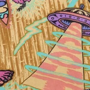 Scout Italy drawstring cinch backpack with colorful psychedelic ocean print featuring narwhal, squid, skull, starfish, coral, and other surreal sea creature graphics. Lightweight single layer woven fabric with aqua drawcord straps. Easy packable cinch sack style that works well as a pool bag, swim bag, gym bag, beach bag, or travel backpack. Bottom gusset gives the bag a bit of extra room.