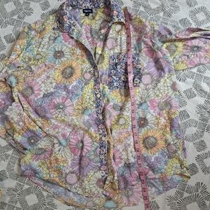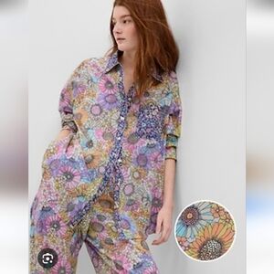 Gap Cotton Poplin Floral PJ Lounge Set Long Sleeve Button Down Drawstring Pant S