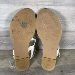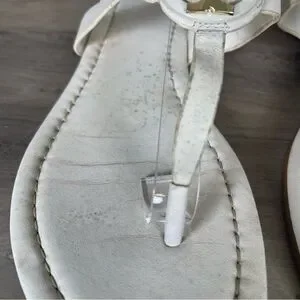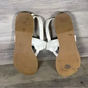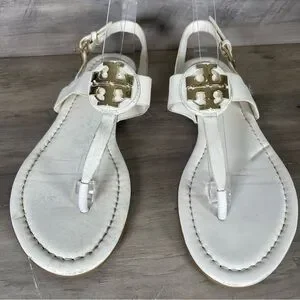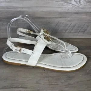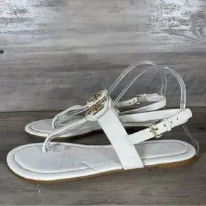 Tory Burch Womens 8 White Bryce Flat Thong Sandals Casual Logo Beach