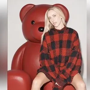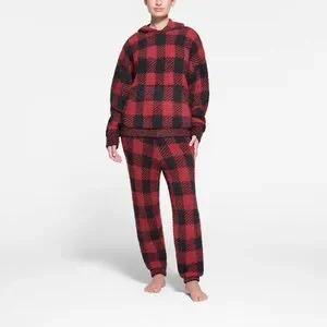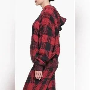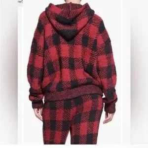 ♥️SKIMS COZY KNIT UNISEX HOODIE BUFFALO CHECK BRICK ONYX 4X/5X
