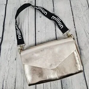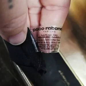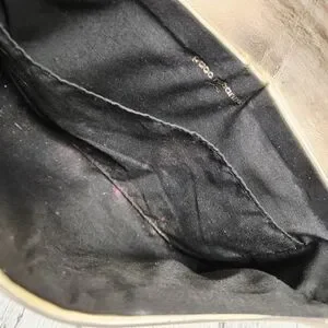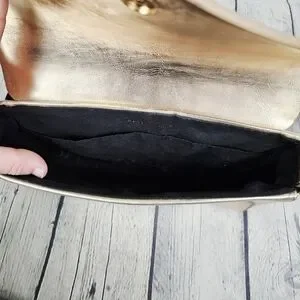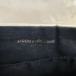 PACO RABANNE PARFUMS | metallic faux leather shoulder bag. Interior needs a good cleaning. Otherwise good pre-owned condition.
