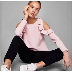 Ted Baker London Steffe Cold Shoulder Ruffle Top Dusty Pink Size 1 Small