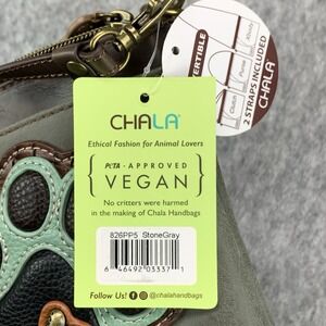 NEW CHALA Stone Gray Paw Print Small Crossbody/Purse VEGAN Convertible Strap