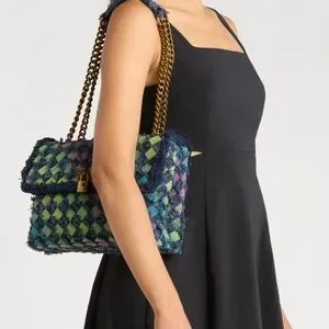 Kurt Geiger NWT Medium Kensington Flocked Denim Crossbody