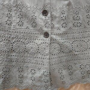 The hem features delicate embroidered eyelet detailing, adding a soft, romantic touch.