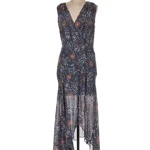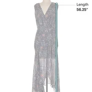 Chic high low dress with a floral pattern. Features a sleeveless design and elegant flow. Ideal for stylish outings.