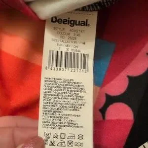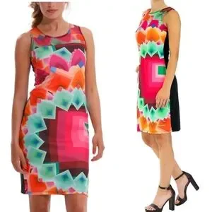 Desigual Shift Dress Geometric Pixel Knit Sheer Mesh Sleeveless Knee Length, Blue Pink Orange Multicolor. Excellent condition no rips or stains. Little to no pilling. Size S please see measurements pictures to be sure of fit