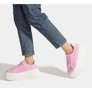 brand new women’s pink platform sneakers, perfect for making a bold fashion statement. Featuring a thick rubber sole for added