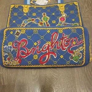 Beautifully decorated Brighton tote with a small zipper pocket inside.