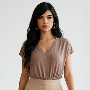 Chic V-neck blouse in a soft brown shade. Short sleeves and relaxed fit. Ideal for versatile styling. Express brand. Size medium. Shirt is preloved and beautiful