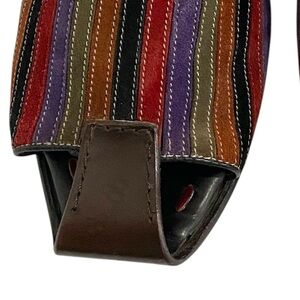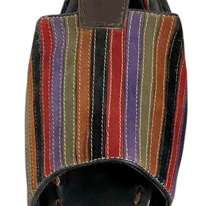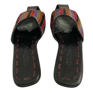 Robert Zur Vintage 90s RZ Design Handmade Leather & Multi Color Jewel Tones Striped Suede Fisherman Slide Sandals