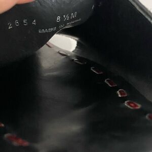 Slight flaws shown in last 2 photos. Two small water spots on leather toe & one missing top stitch. Minimal & not noticeable in my opinion