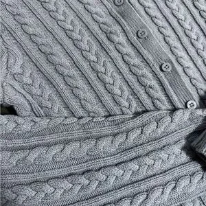 Trendy Hollister cable knit cropped cardigan in a soft blue shade.