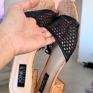 NWOT | Jones New York Black Cork Block Heel Woven Slide Sandals